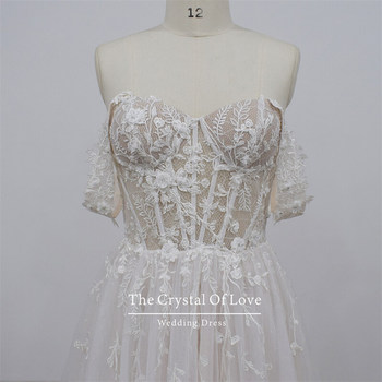 Allover vivace abito da sposa bohémien in pizzo floreale con spalline sottili di perline e maniche a spalle scoperte