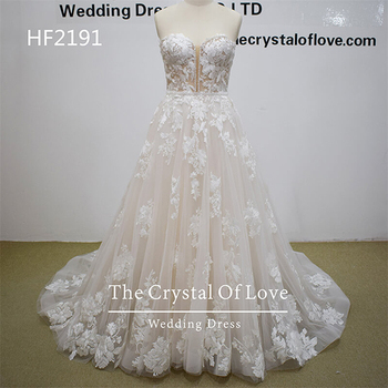 Appliques di pizzo per abiti da sposa, abito da ballo con applicazioni di pizzo, abiti da sposa color champagne