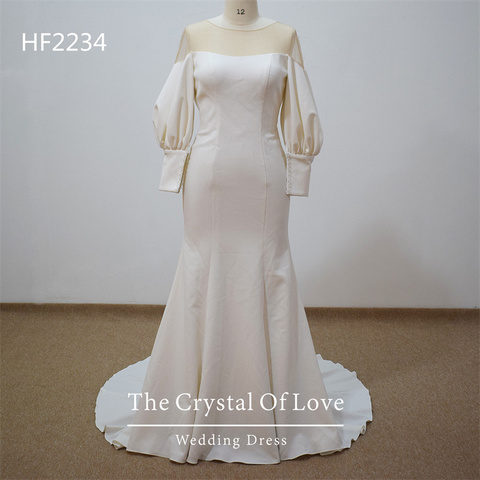 Abito da sposa sirena Champagne con disossamento a vista e maniche a cuffia staccabili con fiocco
