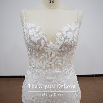 Pizzo cinturino spaghetti sirena abito da sposa all'ingrosso, abito da sposa romantico e sofisticato,