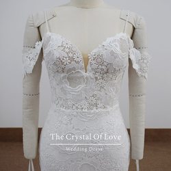 Pizzo di perline fatto a mano di qualità per abito da sposa, abito da sposa a cuore, abito da sposa a sirena con spalle scoperte