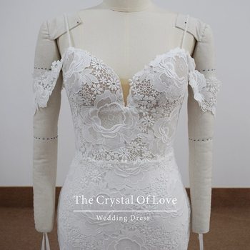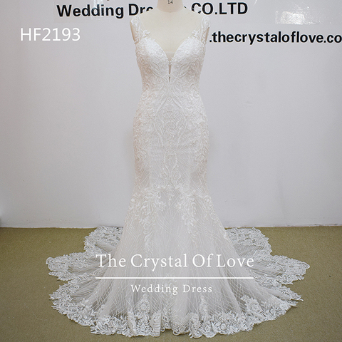 Vestido de noiva de sereia com alça espaguete de renda atacado, vestido de noiva romântico e sofisticado,