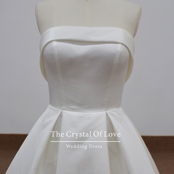 Vestido de noiva princesa de cetim simples e elegante sem alças para noiva Chapel Train