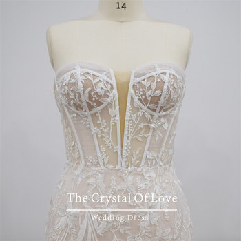 Ren Spaghetti dây đeo Nàng Tiên Cá áo cưới bán buôn, áo cưới lãng mạn và tinh vi,